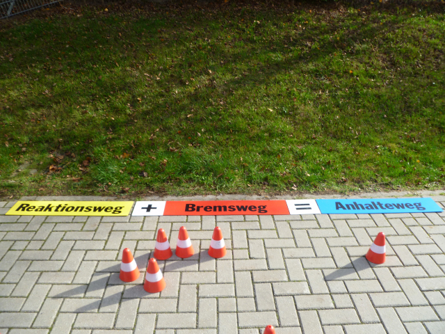 Noch länger dauerte es, als die Schülerinnen und Schüler auf ein Handzeichen hin anhalten mussten, also nicht wussten, wo bzw. wann sie "bremsen" müssen. Daraus wurde gemeinsam die folgende Formel erarbeitet: