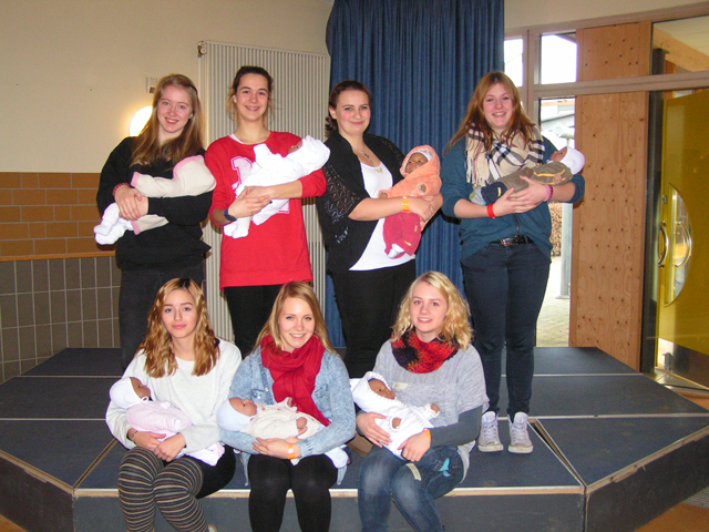 Dass sie sich rund um die Uhr um die Babypuppen kümmern mussten, hat die Schülerinnen vielmehr erfahren lassen, was es heißt, sich um ein Kind zu kümmern. Sie kamen daher schnell zu dem Resümée, es nicht auf die leichte Schulter zu nehmen, ein Kind zu bekommen, da es sehr viel Selbstbewusstsein und Disziplin bedeute. Neben den anstrengenden Nächten galt es auch es auszuhalten, wenn die Übungspuppen in der Öffentlichkeit schrien.