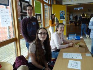 Die Schulleitung begrüßte im Foyer neben der Milchbar unsere Gäste und stand für Fragen zur Verfügung, ein Bücher-Flohmarkt und die Ausstellung unserer Schulkleidung luden zum Stöbern ein.